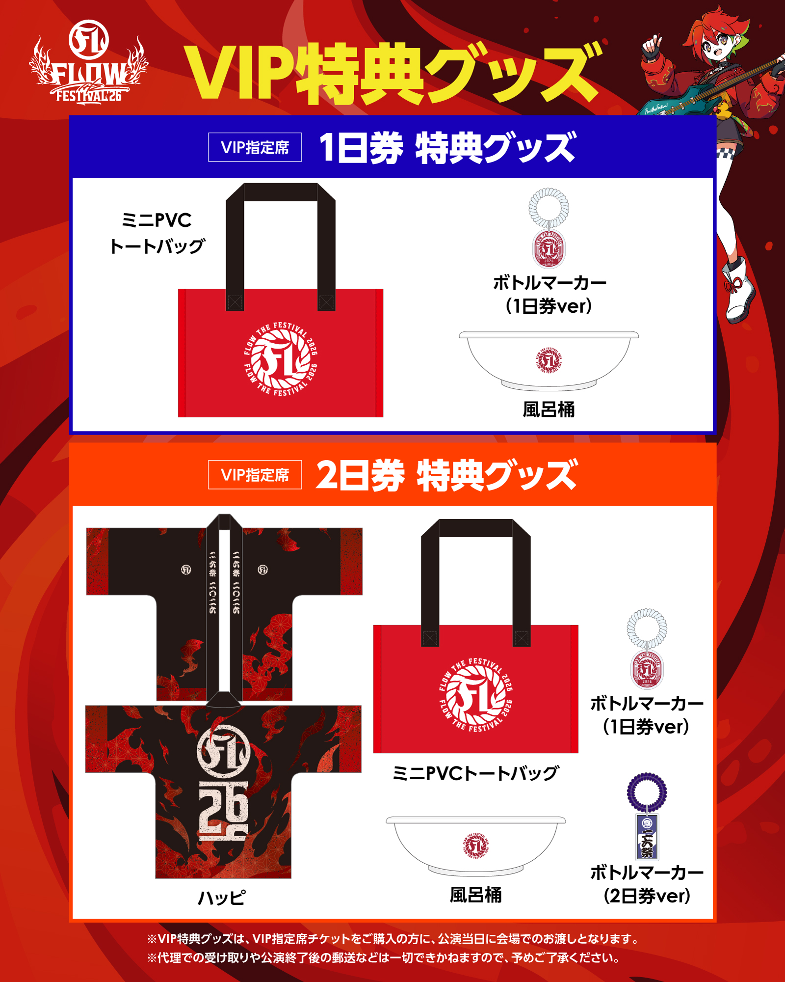 ※VIP指定席チケットの特典グッズは、公演当日に会場でのお渡しとなります。代理での受け取りや公演終了後の郵送などは一切できかねますので、予めご了承ください。
